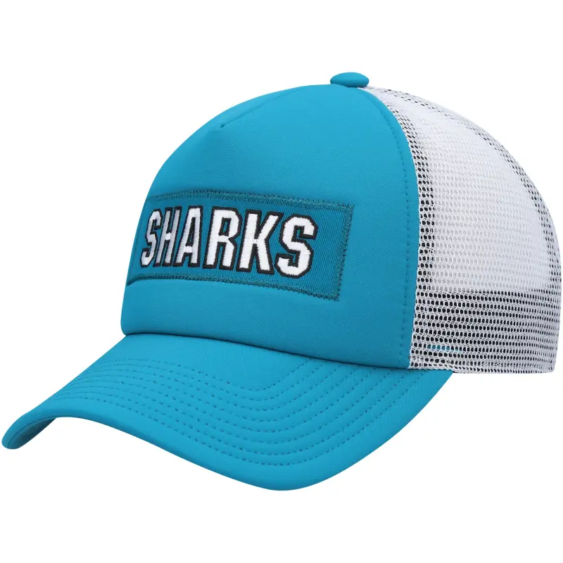 Men’s adidas Teal/White San Jose Sharks Team Plate Trucker Snapback Hat