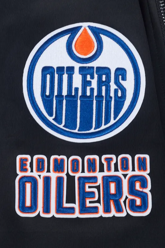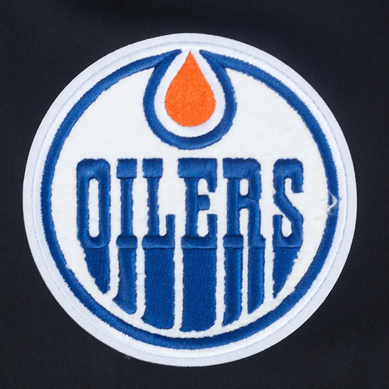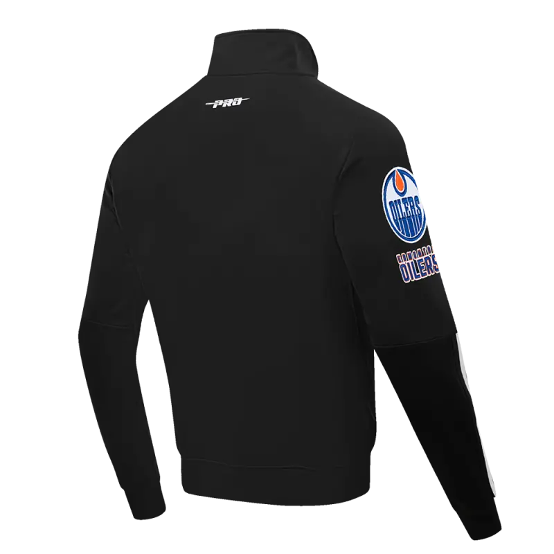 NHL EDMONTON OILERS CLASSIC CHENILLE MEN’S DOUBLE KNIT TRACK JACKET (BLACK)